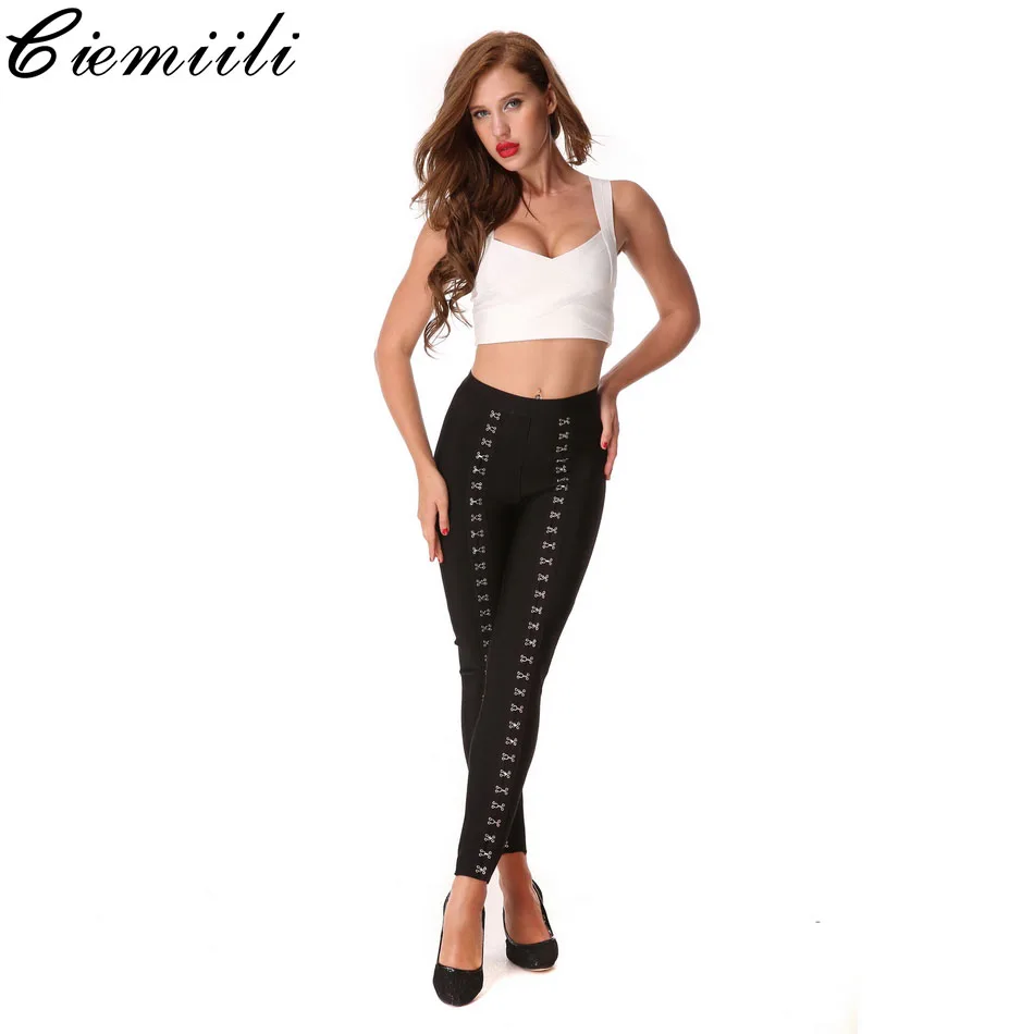 Kopen Goedkoop CIEMIILI 2018 Vrouwen Sexy Bandage Potlood Broek Avond Party Bodycon Fashion Elegante enkellange Skinny Klinknagel Broek Gratis Verzending Online