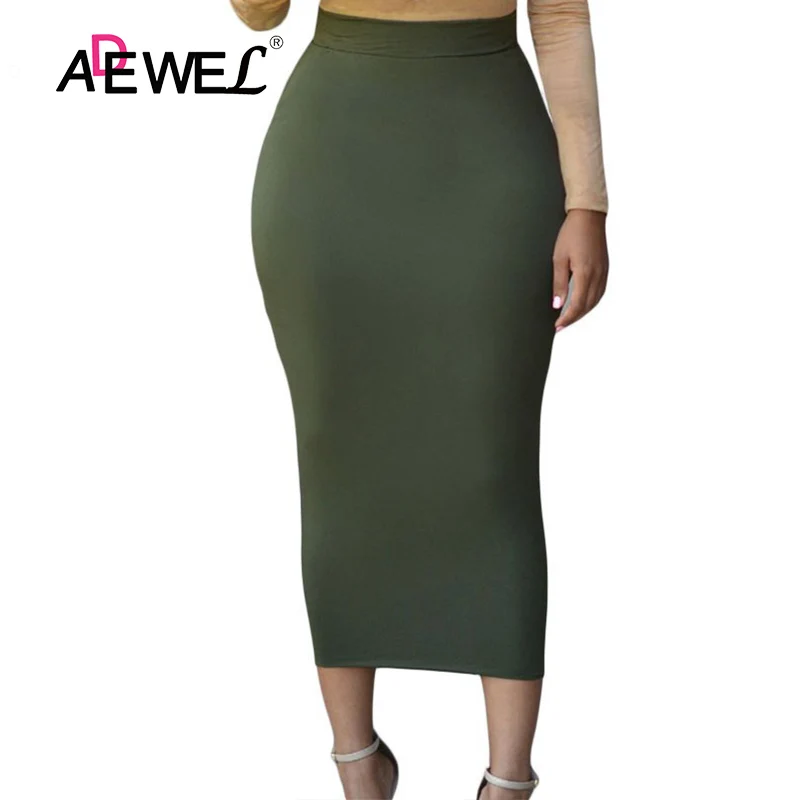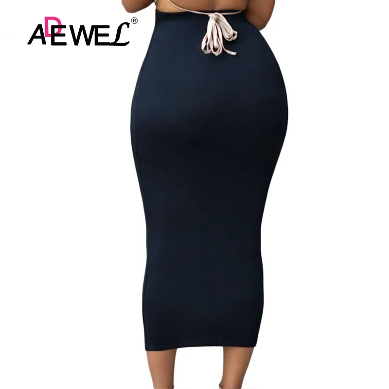 Beste Koop ADEWEL 2018 Sexy Vrouwen Bodycon Lange Rok Zwarte Hoge Taille Strakke Maxi Rokken Club Party Wear Elegante Kokerrok Casual rokken Goedkoop
