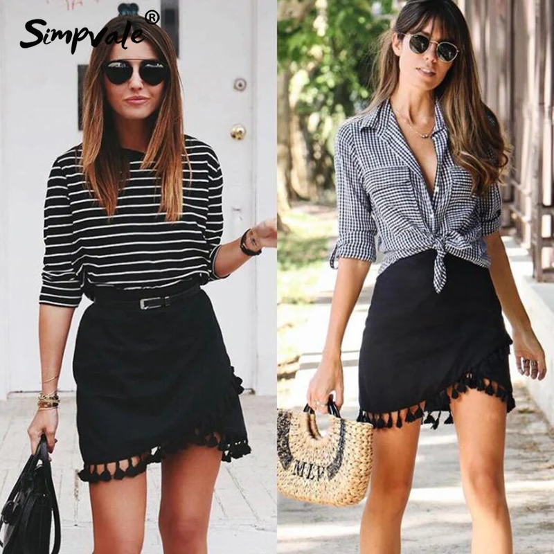 Kopen Goedkoop SIMPVALE Kwastje wit vrouwen rok Hoge taille potlood zwart mini rok Streetwear chic korte strand zomer rok vrouwelijke Prijs.