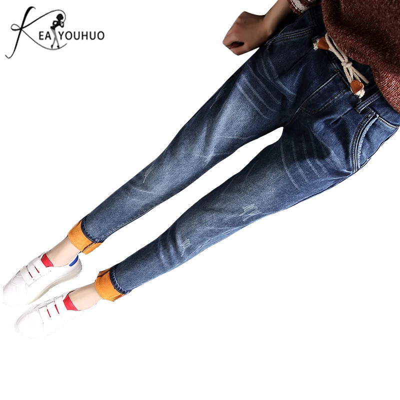 Goede Kopen Nieuwe 2018 Mom Vrouwelijke Thickenin Warm Jeans Vrouwen Herfst Winter Potlood Boyfriend Jeans Voor Vrouwen Jeans Vrouw Hoge Taille Denim broek Goedkoop