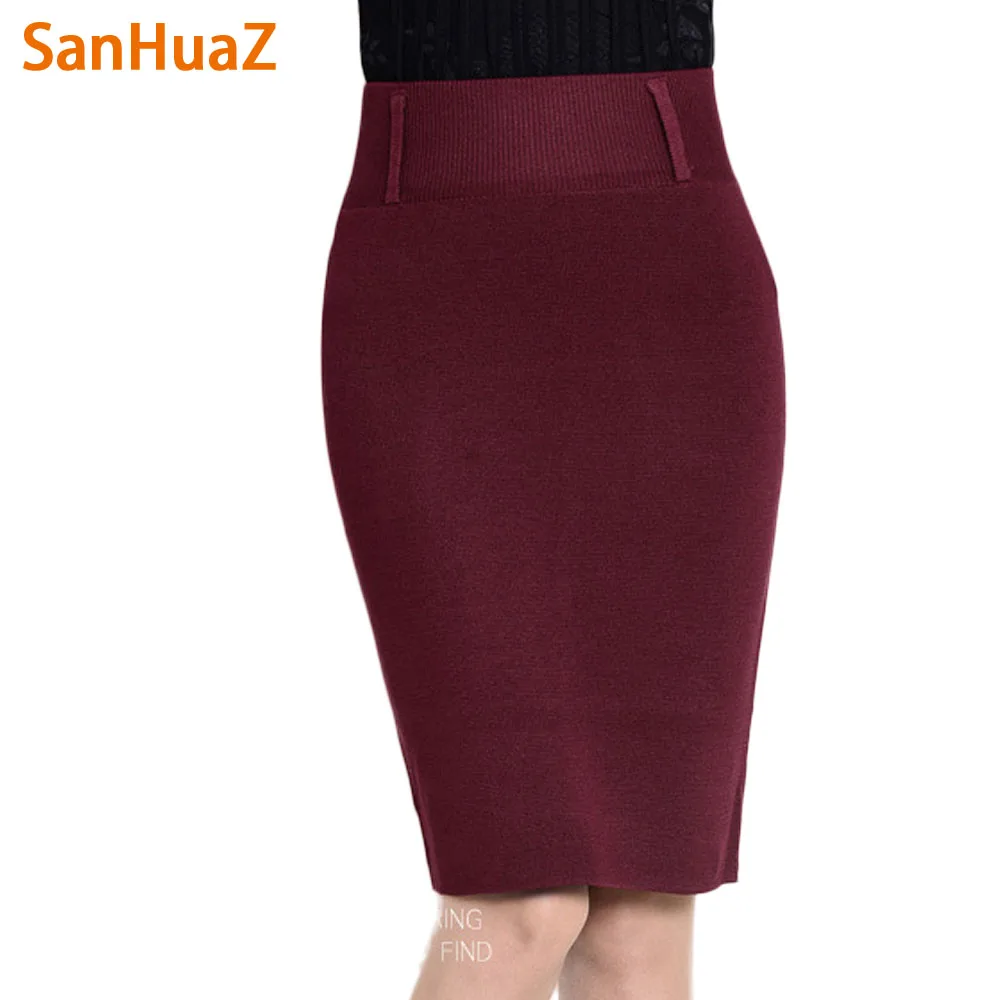 Kopen Goedkoop SanHuaZ 2017 Lente Herfst Winter Europa Casual Formele Elastische Hoge Taille Split Breien Sexy Slim Midi Pakket Heupen Vrouwen Rok Prijs.