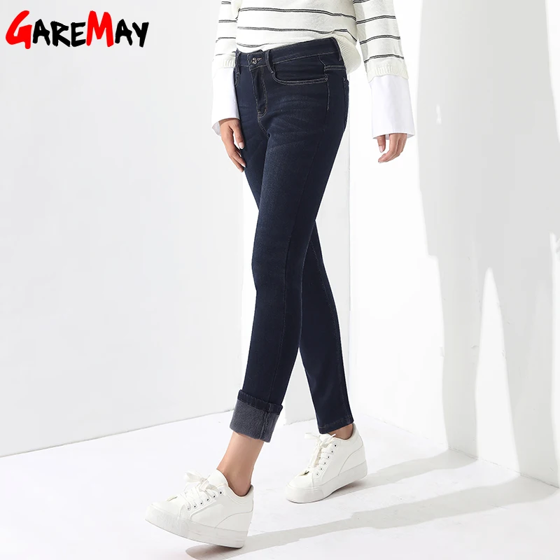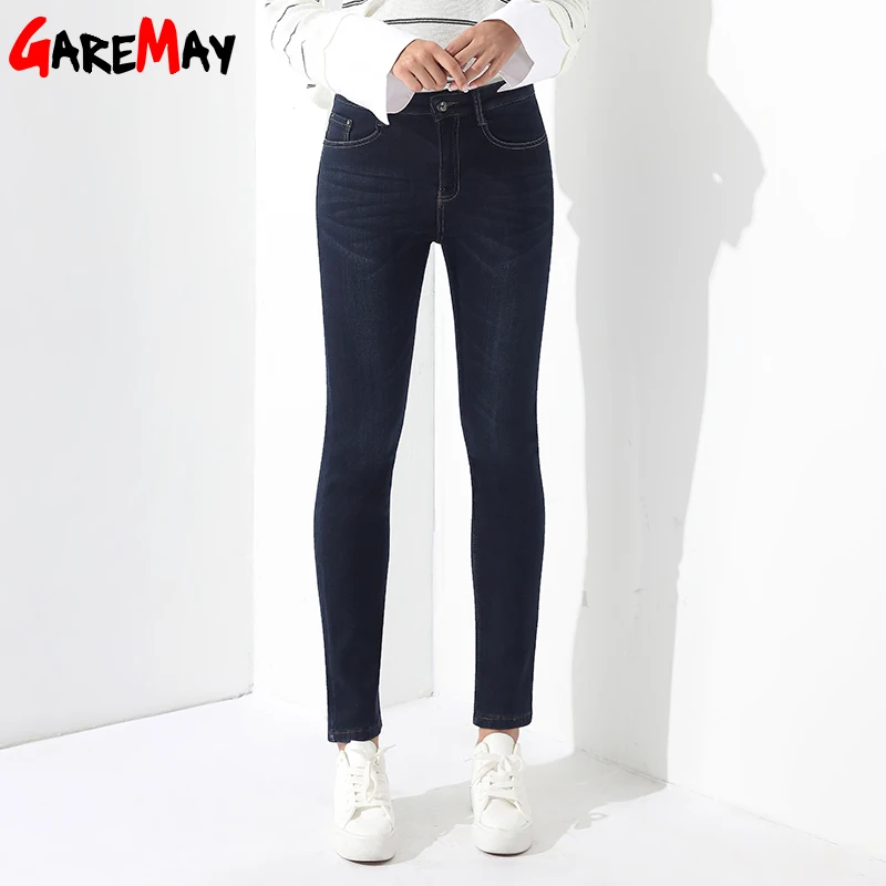 Beste Koop Warm Jeans Voor Vrouw Hoge Taille Plus Size Moeder Jeans Winter Jean Femme 2018 Skinny Denim vrouwen Broek Classic GAREMAY Goedkoop.
