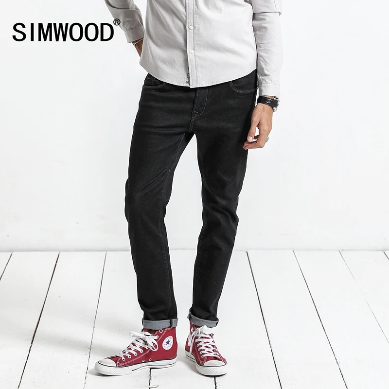 Beste Kopen SIMWOOD 2018 Herfst Nieuwe Jeans Mannen Skinny Biker Jeans Denim Overalls Mannen Slim Fit Plus Size Fashion Broek Plus Size NC017014 Goedkoop