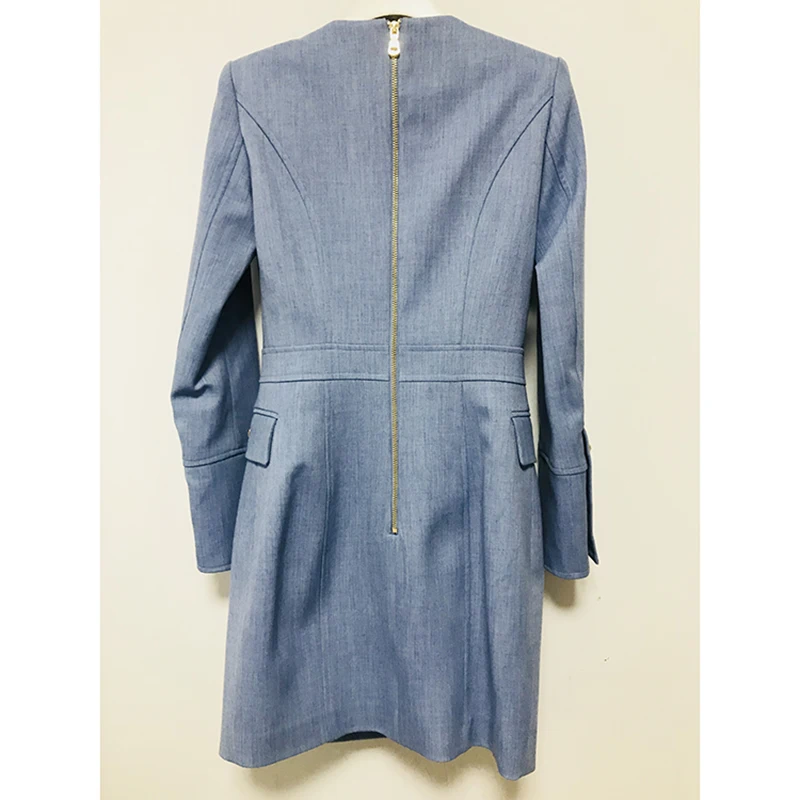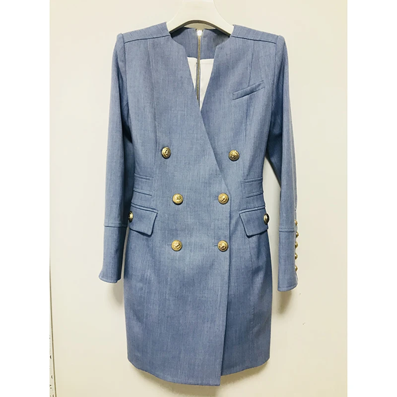 Kopen Goedkoop HIGH STREET Nieuwe Mode 2018 Designer Jurk vrouwen Lange Mouw Metalen Leeuw Knoppen Double Breasted Jurk Maat S XL Online
