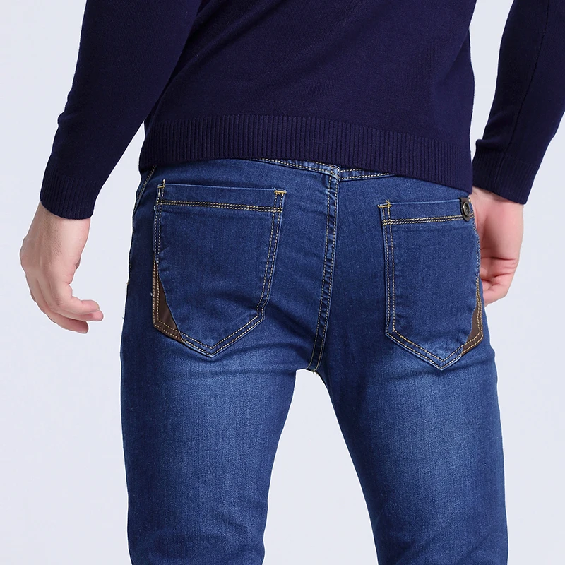 Kopen Goedkoop 2018 Nieuwe Heren merk jeans Mode Mannen Casual Slim fit Straight Hoge Stretch Voeten skinny jeans mannen black hot verkoop mannelijke broek Online