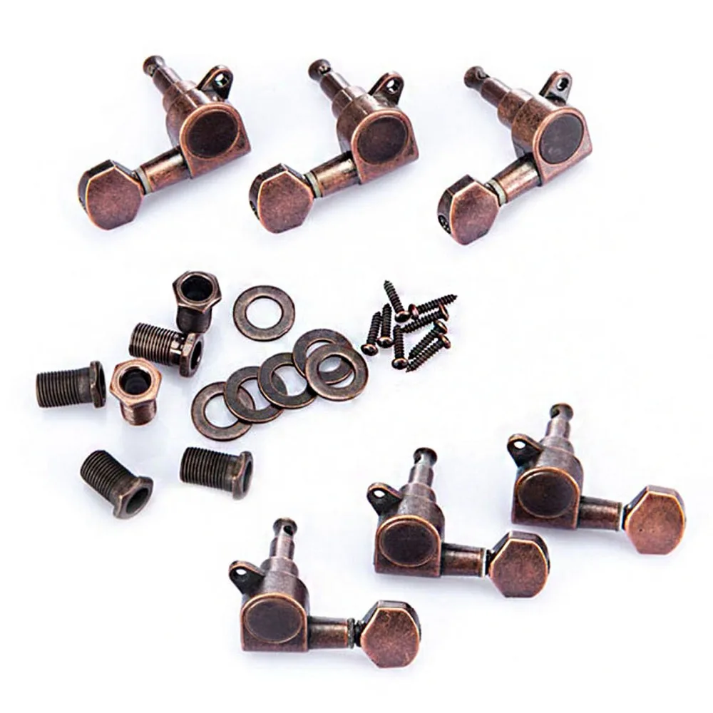 Beste Kopen Vintage Style Brons Guitar String Stemsleutels Tuners Machine Head Voor Elektrische Akoestische 6 stks 3L3R Guitarra Onderdelen 75 B Goedkoop