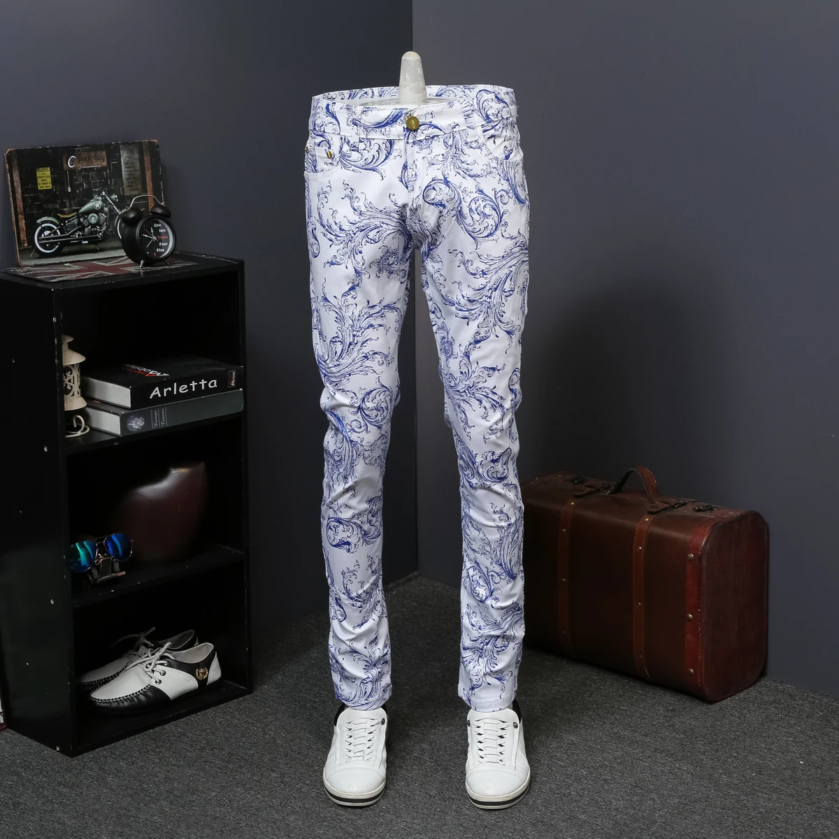 Kopen Goedkoop Bloemenprint Jeans Denim Heren Skinny Jeans Casual Vaqueros Hombre Skinny Erkek Jean Pantolon Calca Jeans Masculina Online.
