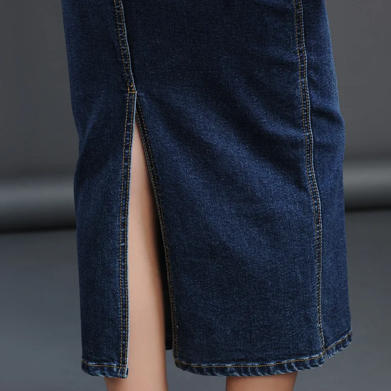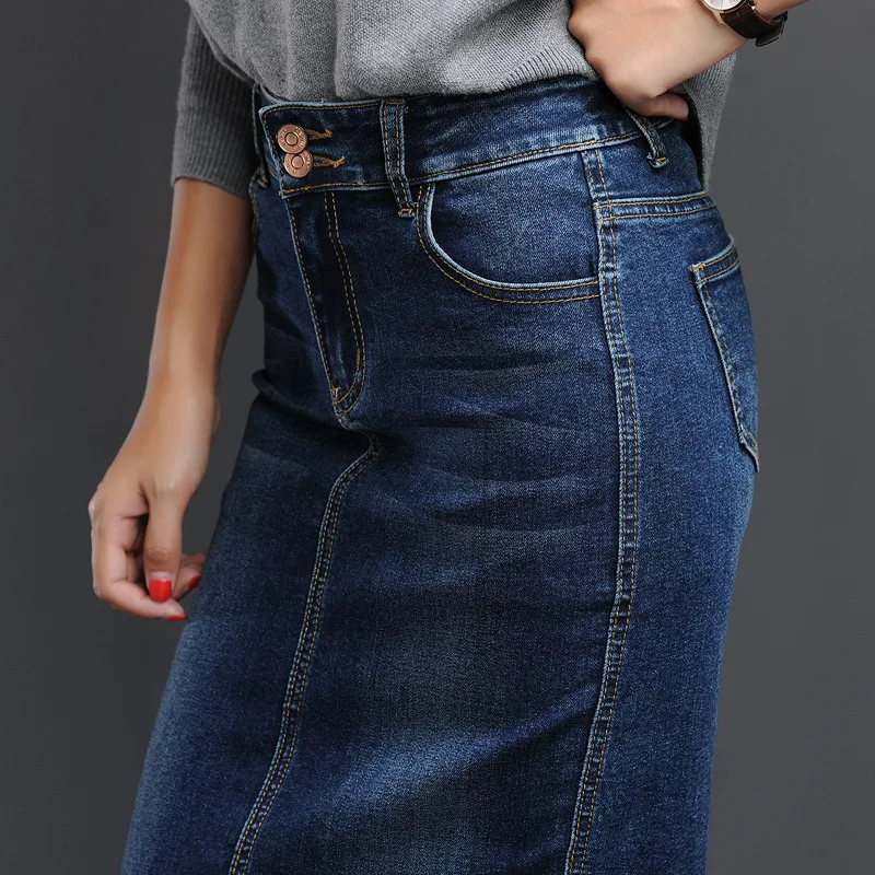 Goede Kopen 2017 Herfst Mode Vrouwen Blauw Zwart Hoge Taille Denim Rok Klassieke Vintage Terug Hoge Split Bodycon Skinny Vrouwelijke Potlood Rokken Goedkoop